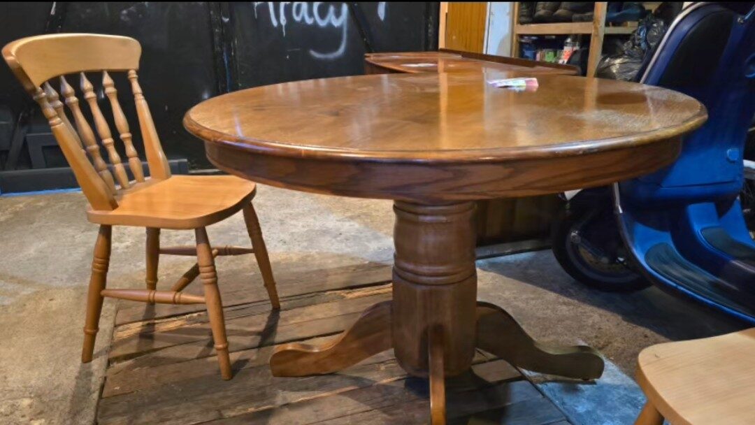 Every detail has been refinished to bring new life, character, and warmth to the set — turning it into a beautiful centrepiece for any home. This one-of-a-kind piece is not only functional and sturdy, but also carries the unique touch of handcrafted restoration.